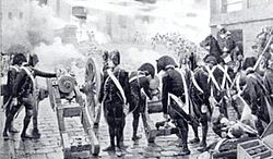 나폴레옹은 로베스피에르의 동생인 오귀스탱과 친분이 있다는 이유와 몇몇 모함을 받아 8월에 투옥되었다.[50] 우여곡절 끝에 곧 석방되었으나 좌천성 발령에 항의하다가 무보직 상태로 파리에서 궁핍한 생활을 이어나갔다.[51] 1795년 10월 5일 파리에서 폭동이 일어나자 좋은 기회가 찾아왔다. 집권한 테르미도르파가 《3분의 2법》을 의결하자 의원선거에서 절대적으로 불리하게 된 왕당파가 무장봉기했는데, 바라스 백작의 요청으로 폭동진압의 책임을 맡게 된 것이다. 나폴레옹은 무장한 2만명의 폭도들을 향해 산탄이 장전된 대포를 쏘는 전법으로[52] 신속하게 폭동을 진압하였다. 이일로 총재정부에 인정을 받게 되어 정보부와 파리의 치안을 담당하는 사령관으로 임명되었다.[53]